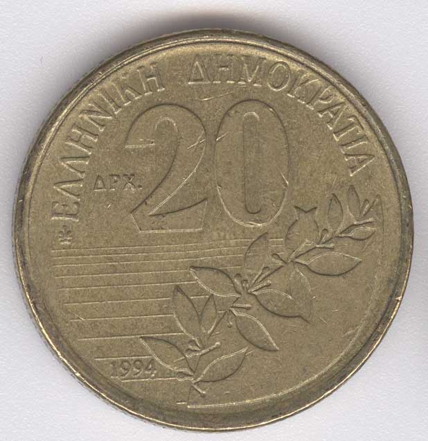 Grecia 20 Drachmai de 1994