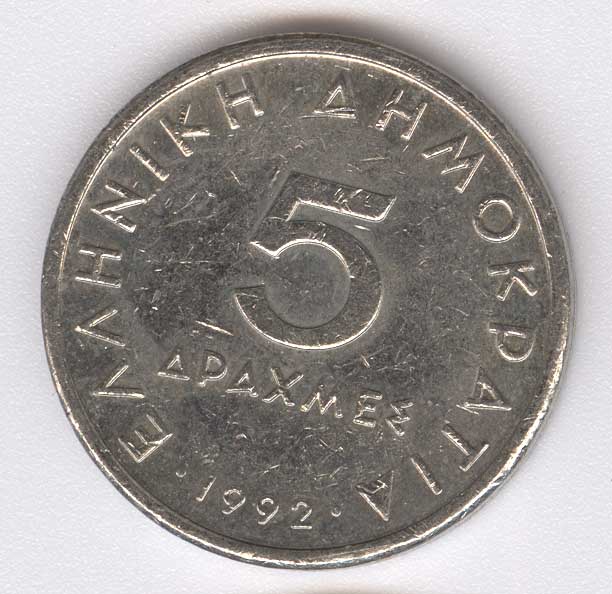 Grecia 5 Drachmai de 1992