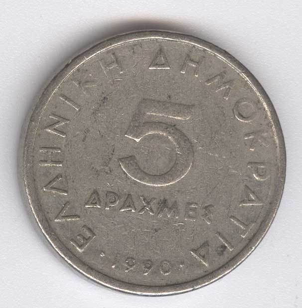 Grecia 5 Drachmai de 1990